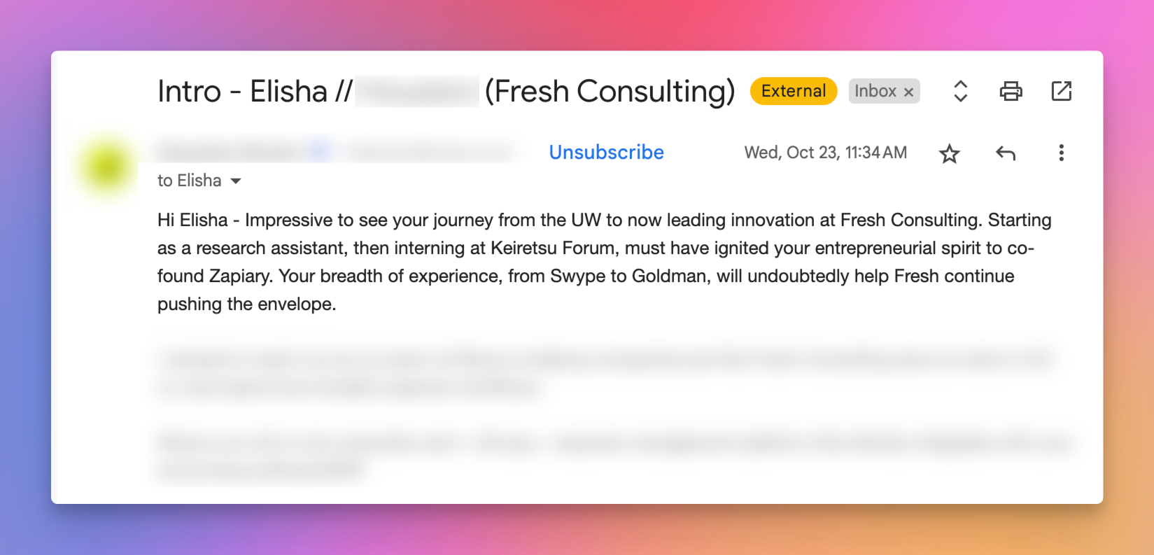 In recent months, more professionals are seeing a flood of cold emails with AI-generated intros, and many recipients can tell when these emails miss the mark. These intros often pull from LinkedIn data and aim to craft personalized messages—but sometimes end up falling flat, misinterpreting information, or creating awkward, impersonal greetings. When done poorly, AI-generated introductions can backfire, giving recipients a negative view of both the sender and the technology behind it.
